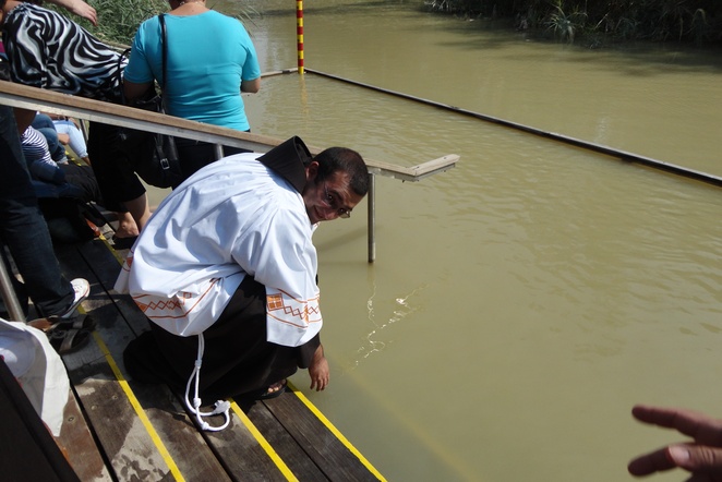 Uistinu se taj dan okupilo mnoštvo vjernika, što franjevaca, što hodočasnika, što kršćana s područja cijele Palestine i Izraela. Krenuli smo rano ujutro iz Jeruzalema, i ušavši u područje Judejske pustinje, spustili se 1200m u pravcu Mrtvoga mora, Jerihona, i konačno našega odredišta, koji se nalaze 400m ispod razine mora. Nakon dolaska hodočasnika koji su stigli iz drugih sredina, posebno iz dva sata vožnje udaljene Galileje, uputili smo se u procesiji prema rijeci Jordan i mjestu koje smo dobili od izraelske vlasti na kojem nam je omogućeno slaviti Euharistiju i na kojem će, nadamo se jednoga dana, niknuti jedno novo svetište. Misno slavlje je, uz veliki broj koncelebranata, predslavio kustos Pierbattista Pizzaballa. A unutar slavlja smo obnovili i naša krsna obećanja. Misno slavlje je bilo praćeno pjevanjem i asistencijom za koje su se, kao i uvijek, pobrinuli bogoslovi.