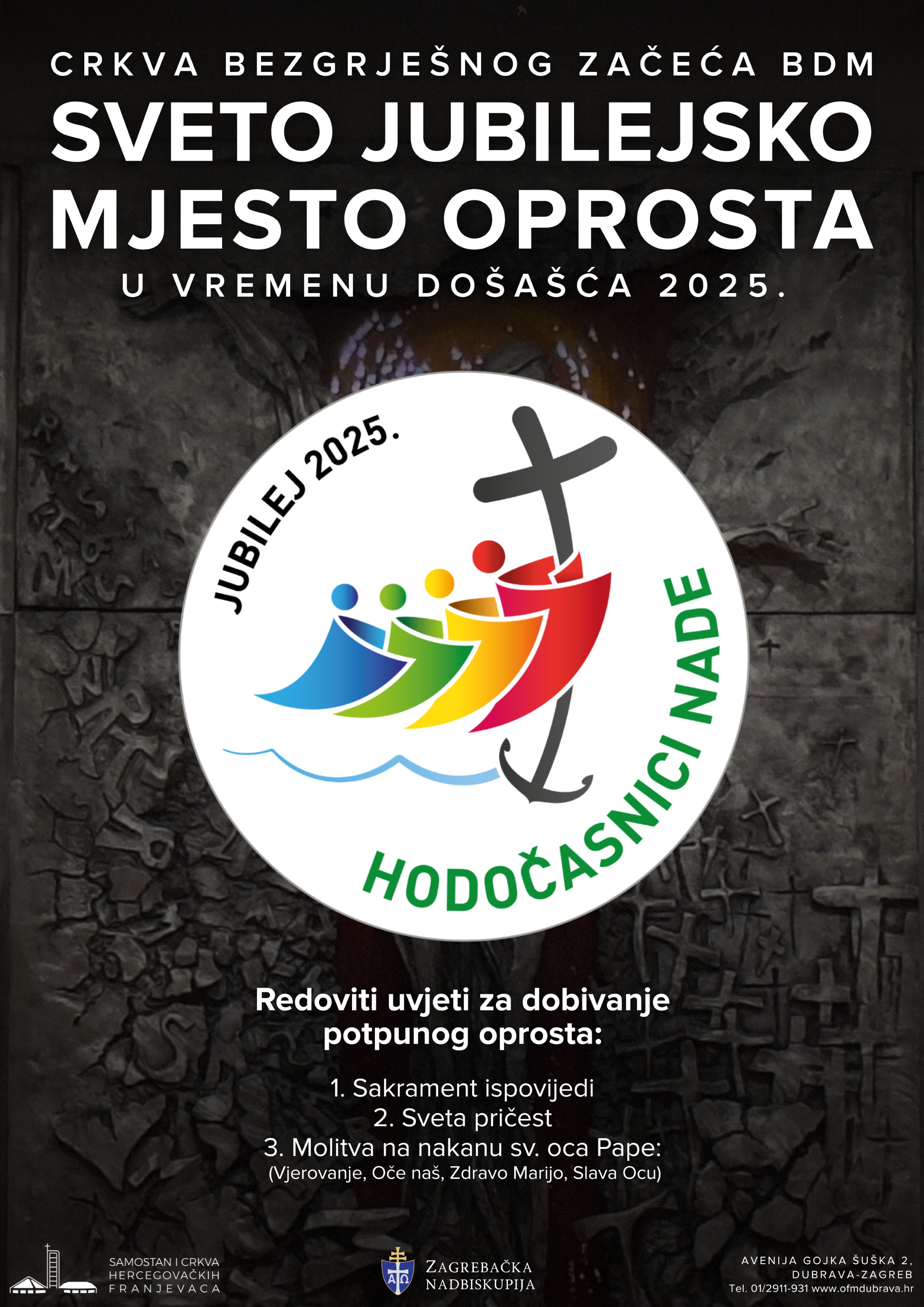 Odlukom zagrebačkog nadbiskupa, za vrijeme Došašća 2025. godine u našoj crkvi će biti moguće zadobiti potpuni oprost u sklopu Jubilejske godine nade 2025.