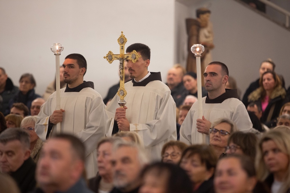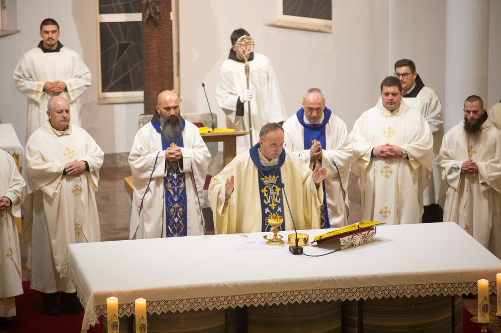 Svetkovinu Bezgrješnog začeća BDM, zaštitnice naše crkve i samostana, proslavili smo u ponedjeljak, 8. prosinca 2025. godine, svečanim euharistijskim slavljem u 18 sati koje je predslavio mons. Mladen Vukšić, biskup kotorski. U koncelebraciji je sudjelovalo osamnaest svećenika među kojima su bili gvardijan fra Slaven Brekalo, vikar samostana fra Ante Bekavac, odgojitelj bogoslova fra Stanko Mabić, kao i braća svećenici iz samostana, te svećenici Remetsko-dubravskog dekanata, uz asistenciju naših bogoslova. Svojim pjevanjem misu je uveličao naš bogoslovski zbor. Nakon misnoga slavlja bratsko se zajedništvo nastavilo u dvorani ispod crkve.