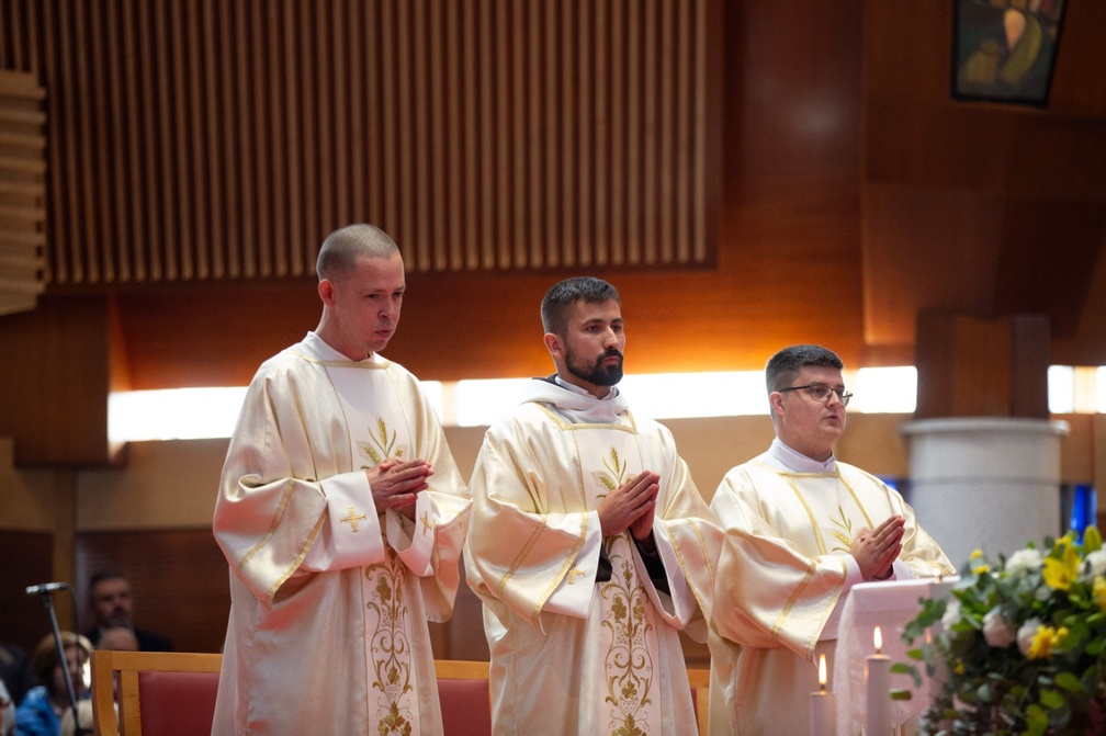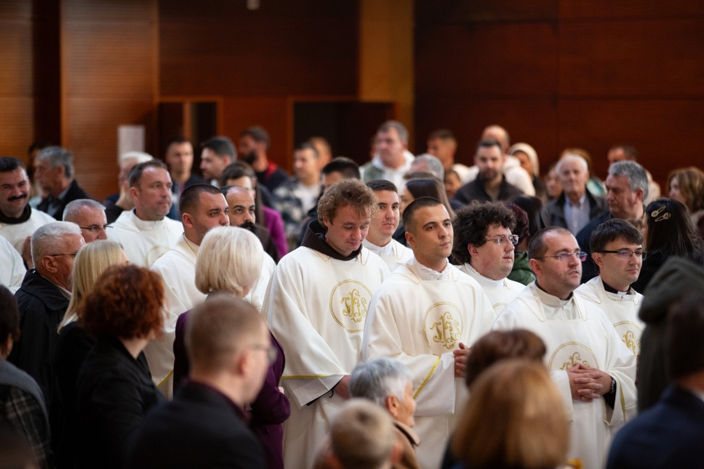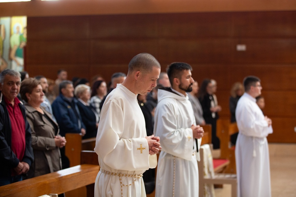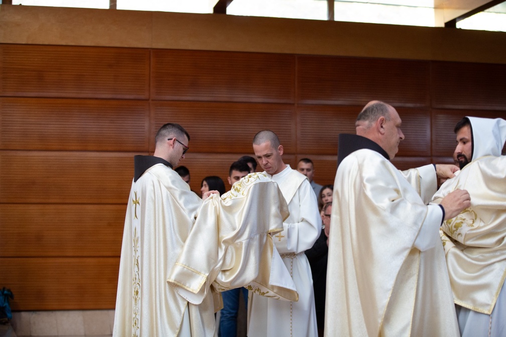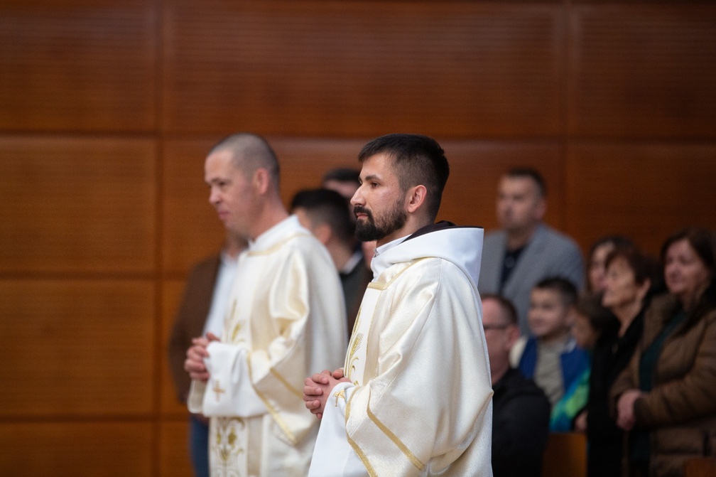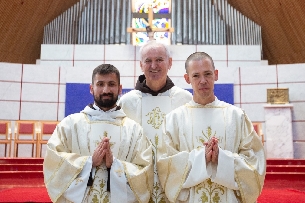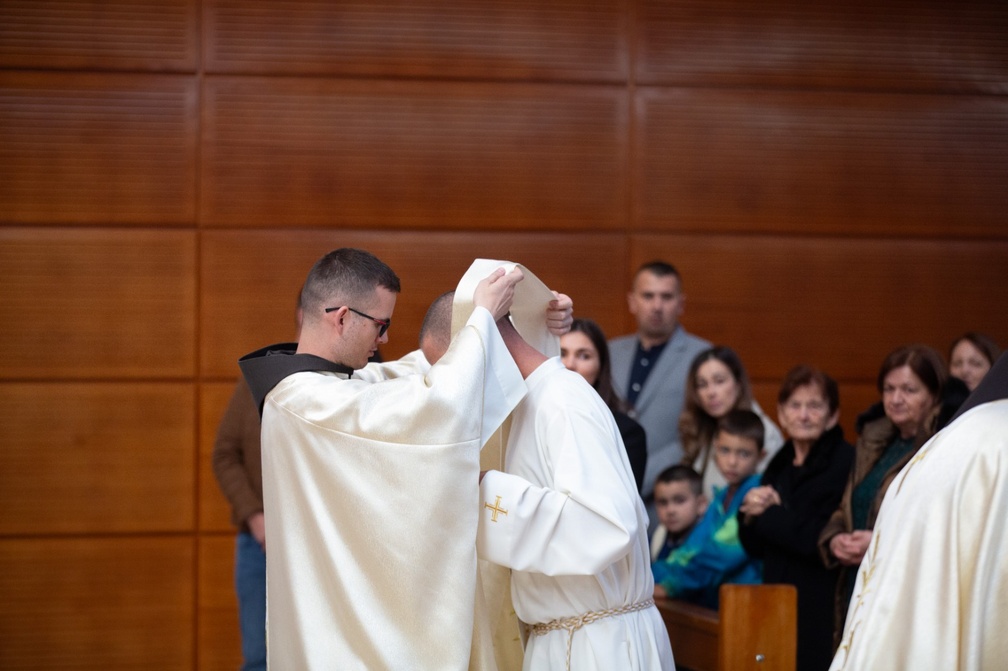 U subotu, 15. studenoga 2025., u mostarskoj katedrali Marije Majke Crkve, tijekom svečanoga euharistijskog slavlja koje je započelo u 11 sati biskup mostarsko-duvanjski mons. Petar Palić podijelio je sveti red đakonata dvojici članova naše Provincije: fra Anti Radošu, župa Uznesenja BDM – Seonica, i fra Davidu Sliškoviću, župa Uznesenja BDM – Široki Brijeg te kandidatu Mostarsko-duvanjske biskupije don Tomislavu Čarapini iz župe Presvetoga Srca Isusova – Potoci.