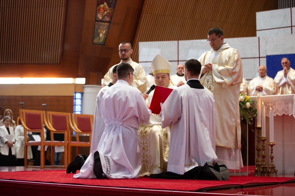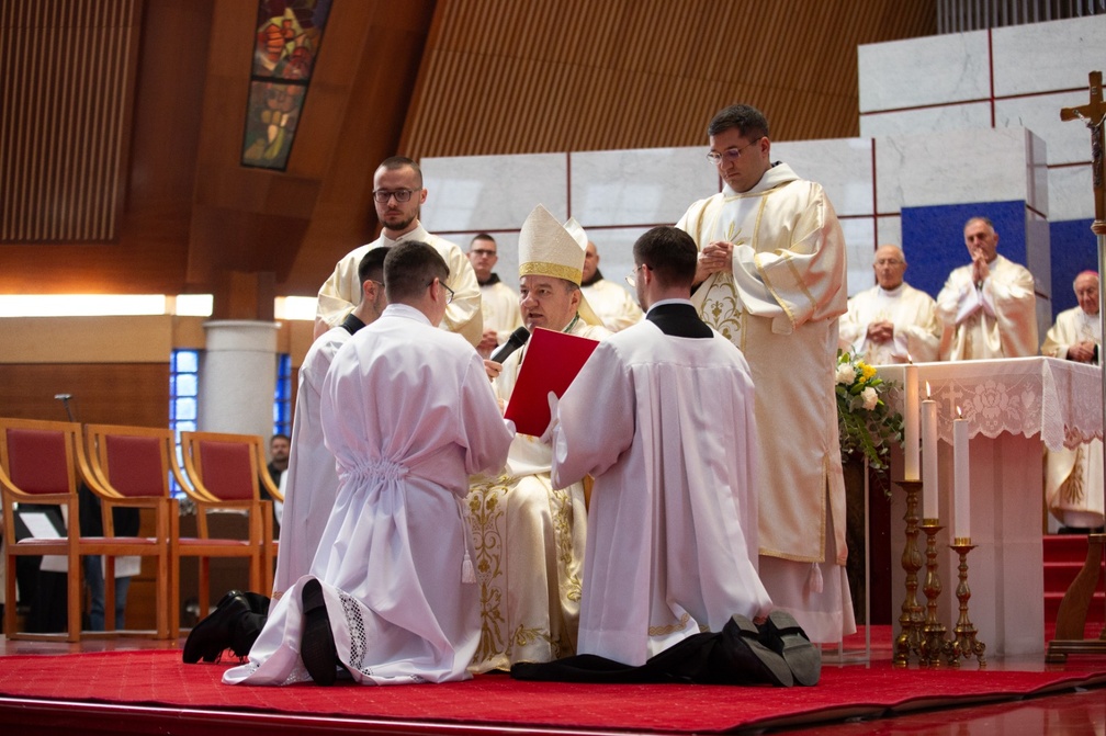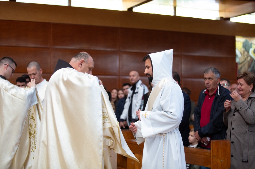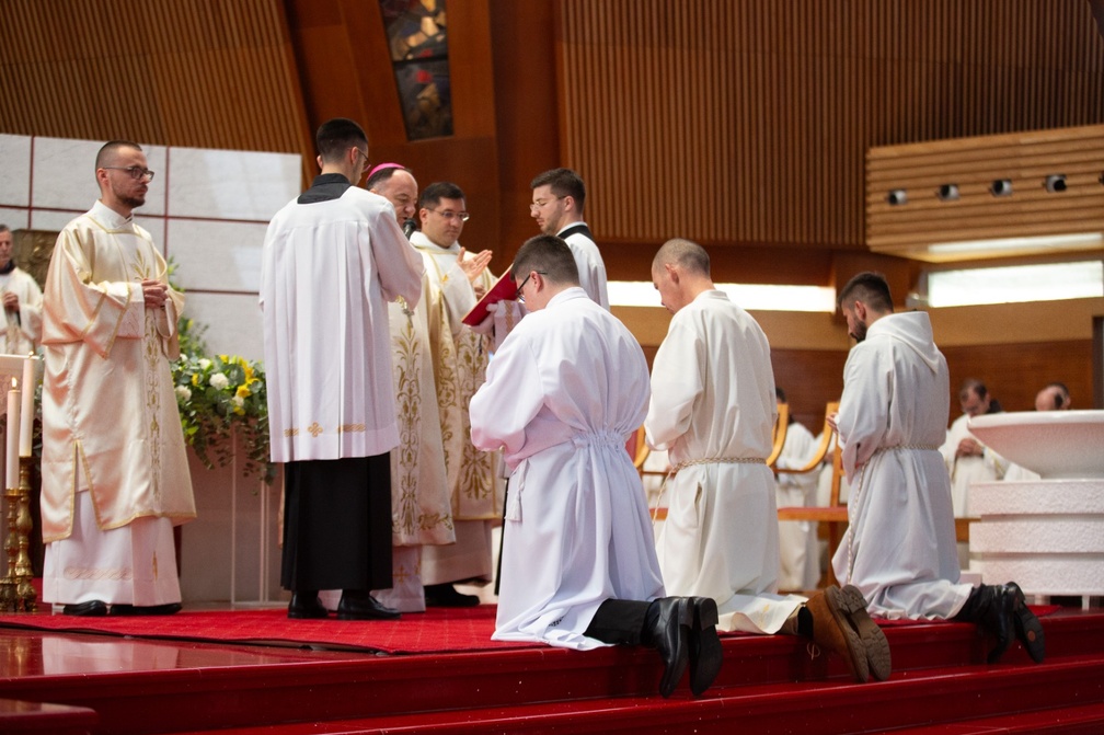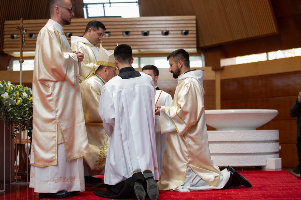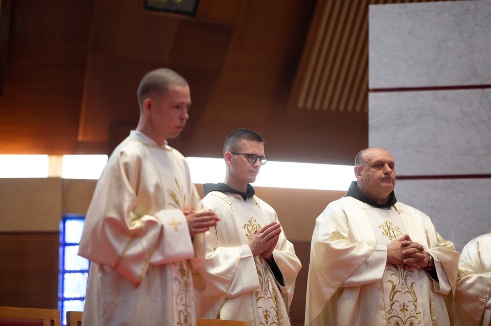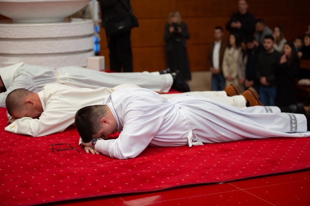 U subotu, 15. studenoga 2025., u mostarskoj katedrali Marije Majke Crkve, tijekom svečanoga euharistijskog slavlja koje je započelo u 11 sati biskup mostarsko-duvanjski mons. Petar Palić podijelio je sveti red đakonata dvojici članova naše Provincije: fra Anti Radošu, župa Uznesenja BDM – Seonica, i fra Davidu Sliškoviću, župa Uznesenja BDM – Široki Brijeg te kandidatu Mostarsko-duvanjske biskupije don Tomislavu Čarapini iz župe Presvetoga Srca Isusova – Potoci.