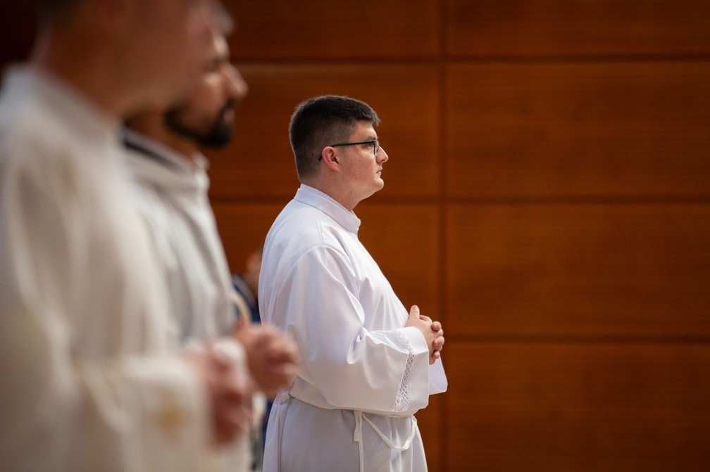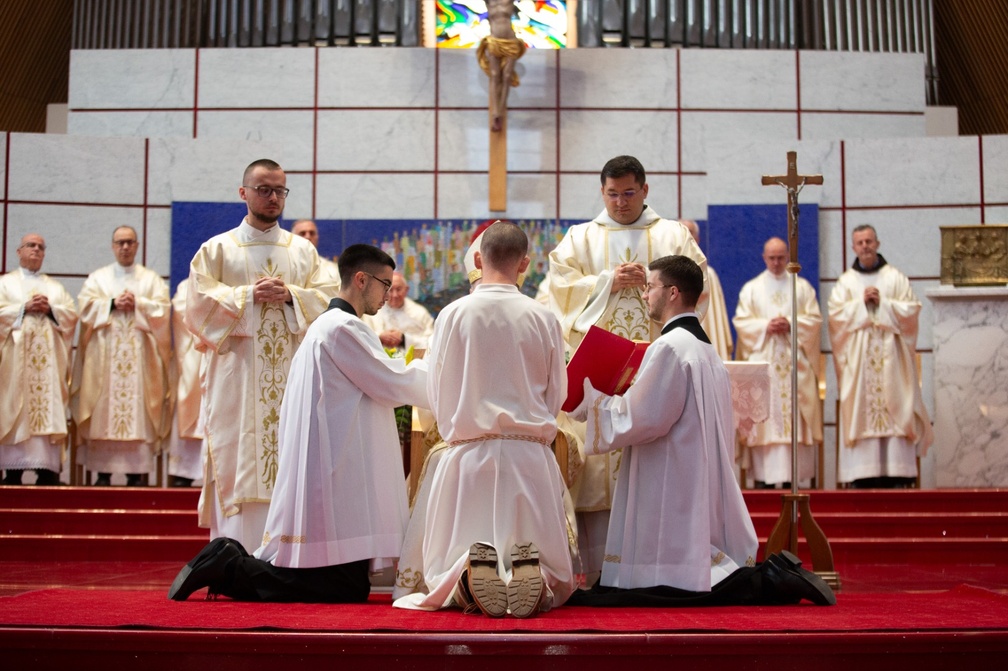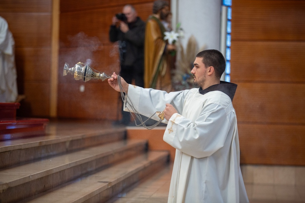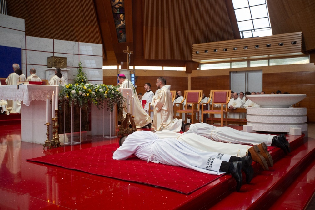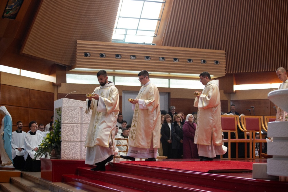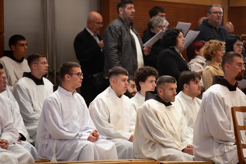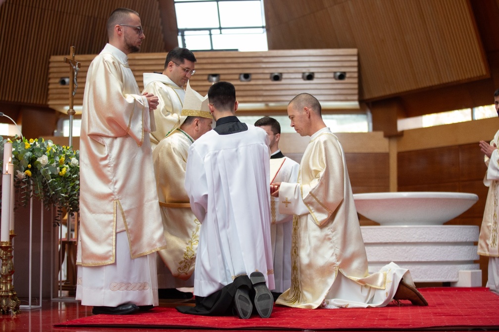 U subotu, 15. studenoga 2025., u mostarskoj katedrali Marije Majke Crkve, tijekom svečanoga euharistijskog slavlja koje je započelo u 11 sati biskup mostarsko-duvanjski mons. Petar Palić podijelio je sveti red đakonata dvojici članova naše Provincije: fra Anti Radošu, župa Uznesenja BDM – Seonica, i fra Davidu Sliškoviću, župa Uznesenja BDM – Široki Brijeg te kandidatu Mostarsko-duvanjske biskupije don Tomislavu Čarapini iz župe Presvetoga Srca Isusova – Potoci.