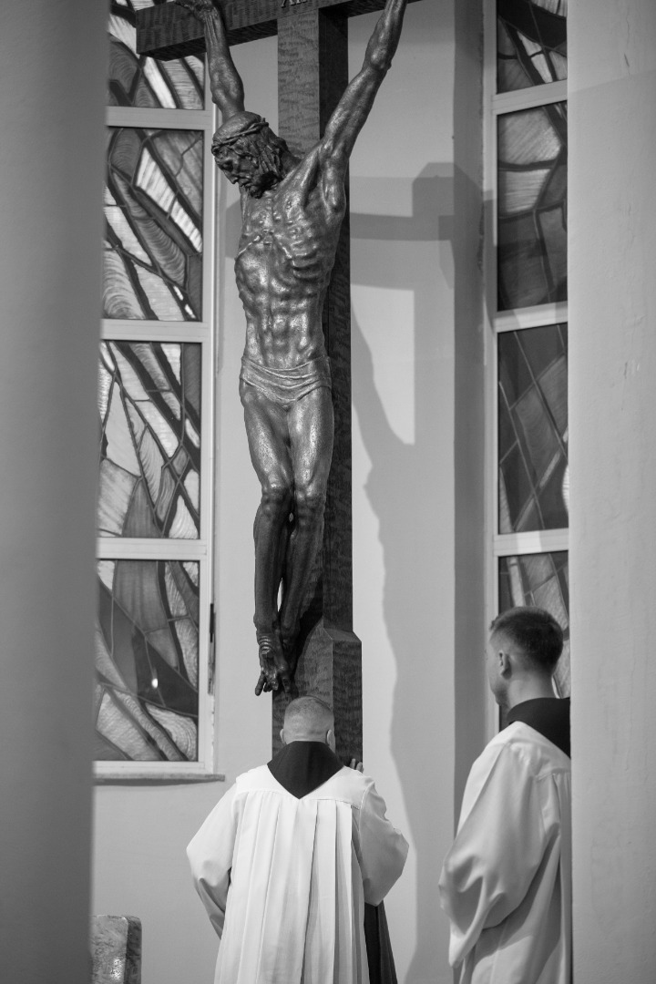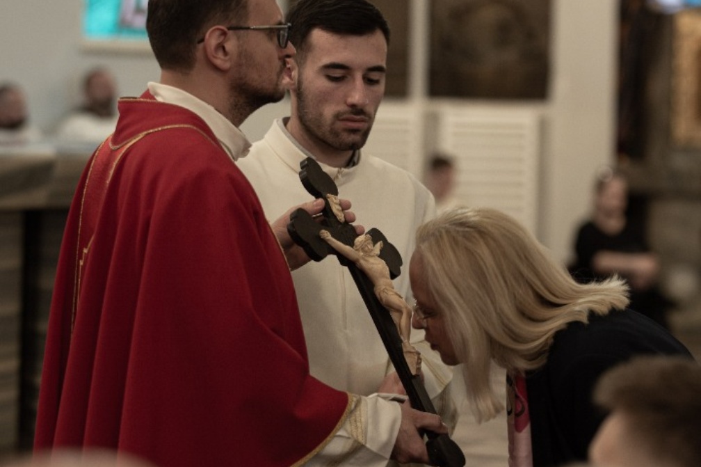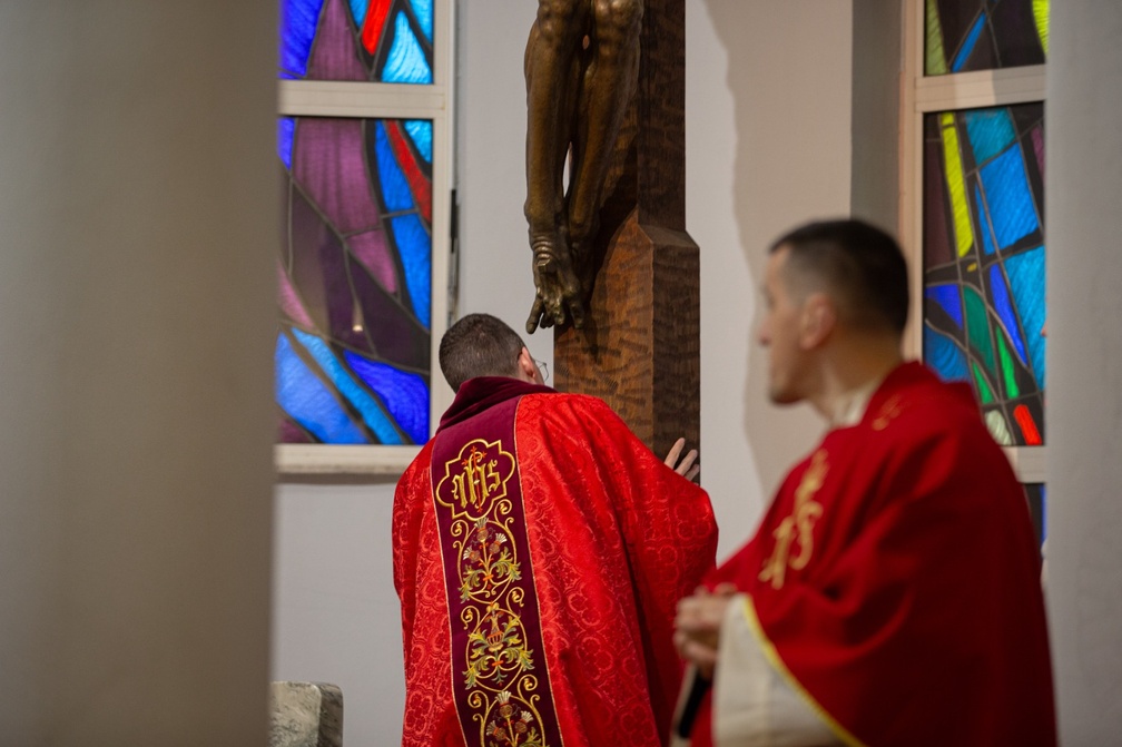 Tišina. To je odgovor na otajstvo Božje ljubavi prema nama koja se pokazala u križu. Službu Muke Gospodnje započeli smo u tišini, prostirući se pred križem Gospodinovim. Obred je predvodio naš pomoćni meštar fra Renato Galić, a sastojao se od službe Riječi, pjevane Muke po Ivanu, homilije, otkrivanja i ljubljenja križa, te svete pričesti. Na koncu obreda razišli smo se u tišini razmatrajući otajstva slavnoga križa Isusova.