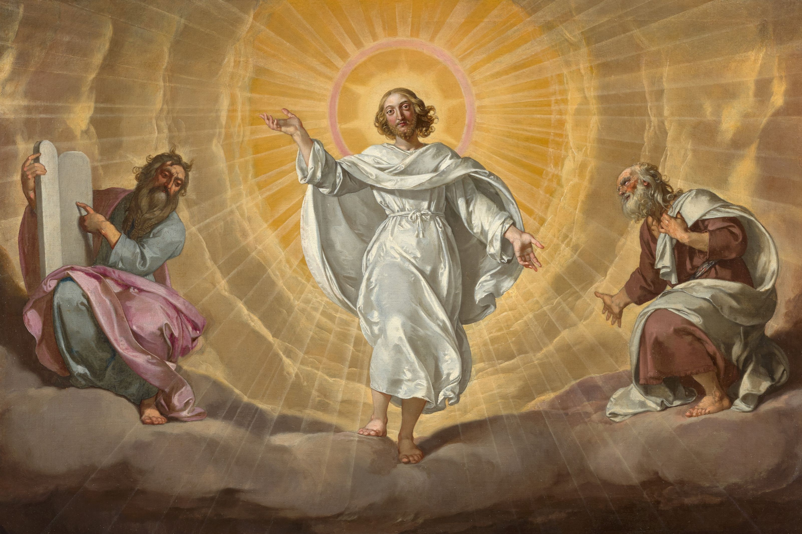 U ono vrijeme: Isus uze sa sobom Petra, Jakova i Ivana, brata njegova, te ih povede na goru visoku, u osamu, i preobrazi se pred njima. I zasja mu lice kao sunce, a haljine mu postadoše bijele kao svjetlost. I gle: ukazaše im se Mojsije i Ilija te razgovarahu s njime. A Petar prihvati i reče Isusu: »Gospodine, dobro nam je ovdje biti. Ako hoćeš, načinit ću ovdje tri sjenice, tebi jednu, Mojsiju jednu i Iliji jednu.«