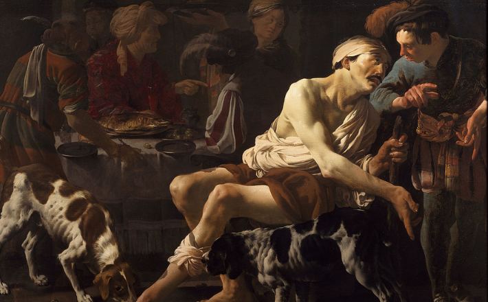 U ono vrijeme: Reče Isus farizejima: »Bijaše neki bogataš. Odijevao se u grimiz i tanani lan i danomice se sjajno gostio. A neki siromah, imenom Lazar, ležao je sav u čirevima pred njegovim vratima i priželjkivao nasititi se onim što je padalo s bogataševa stola. Čak su i psi dolazili i lizali mu čireve.