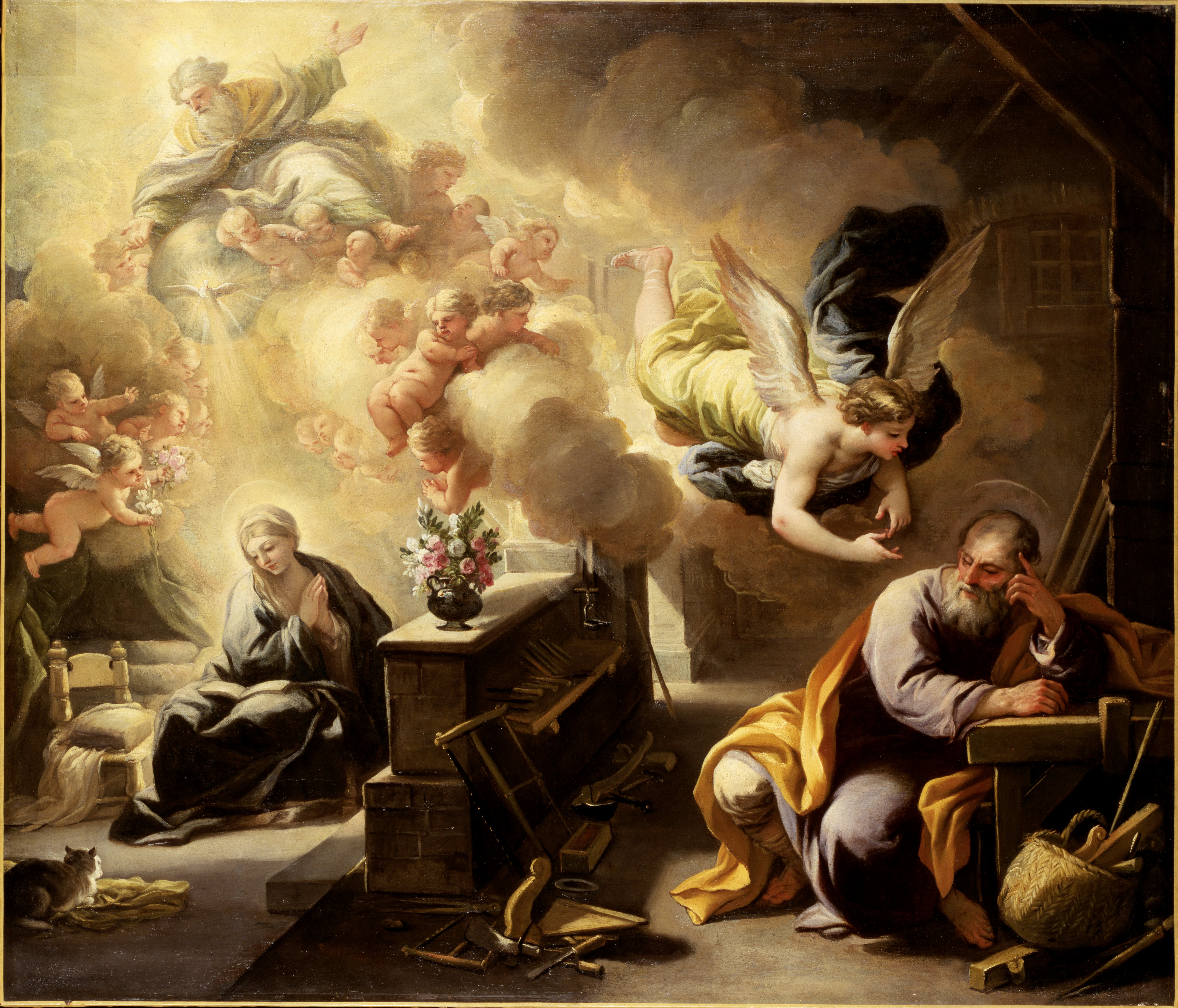 Njegova majka Marija, zaručena s Josipom, prije nego se sastadoše, nađe se trudna po Duhu Svetom. A Josip, muž njezin, pravedan, ne htjede je izvrgnuti sramoti, nego naumi da je potajice napusti. Dok je on to snovao, gle, anđeo mu se Gospodnji ukaza u snu i reče: »Josipe, sine Davidov, ne boj se uzeti k sebi Mariju, ženu svoju. Što je u njoj začeto, doista je od Duha Svetoga. Rodit će sina, a ti ćeš mu nadjenuti ime Isus jer će on spasiti narod svoj od grijeha njegovih.« Sve se to dogodilo da se ispuni što Gospodin reče po proroku: »Evo, Djevica će začeti i roditi sina i nadjenut će mu se ime Emanuel – što znači: S nama Bog!« Kad se Josip probudi oda sna, učini kako mu naredi anđeo Gospodnji: uze k sebi svoju ženu.